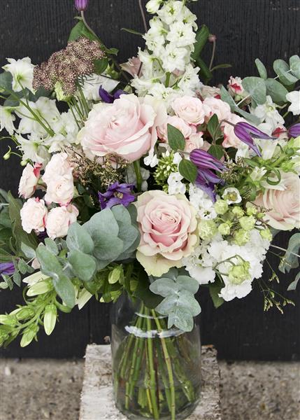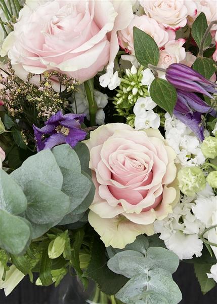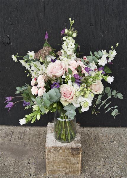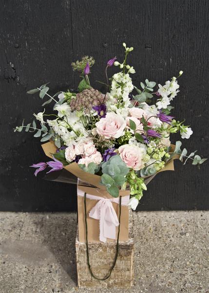 Pretty pastel flowers are hand-picked to create this charming and romantic arrangement.
