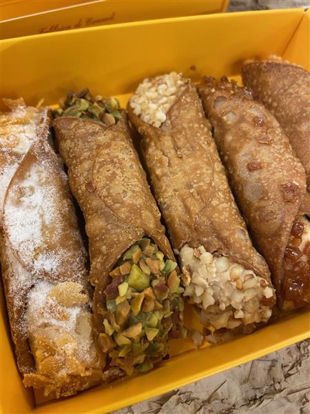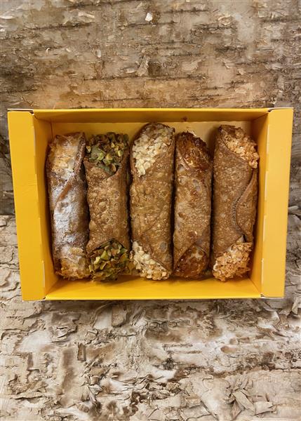 Cannoli are classic Italian pastries featuring crisp, golden shells filled with a sweet, creamy ricotta-based filling. Garnished with chocolate chips, candied fruit, or pistachios, cannoli offer a perfect balance of crunch and creaminess — a delightful taste of Sicily in every bite.