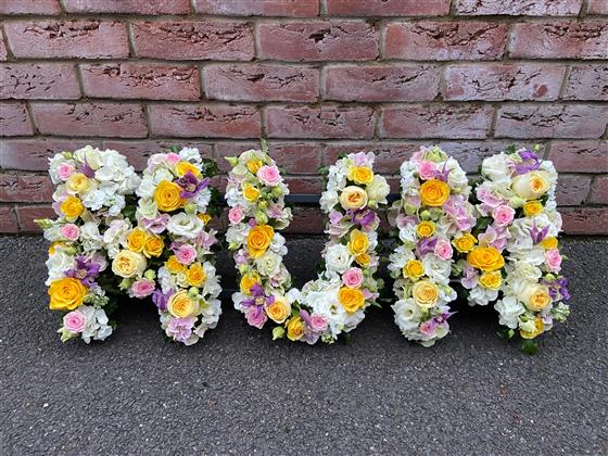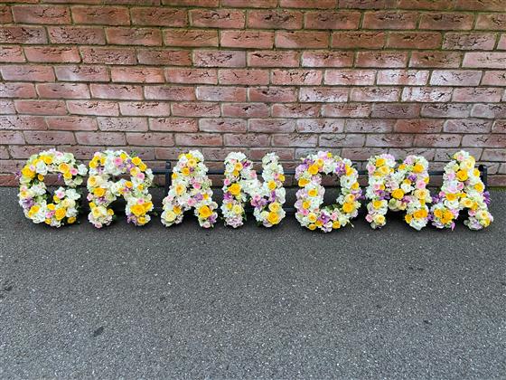Floral sympathy letters are a deeply personal tribute, thoughtfully arranged to spell out a name, nickname, or meaningful word. Each letter is carefully handcrafted using fresh flowers.