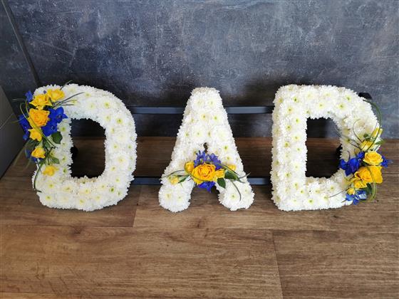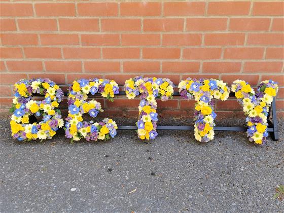 The floral letters are £55.00 each. These are presented on a frame to hold them together and stand up as photographed.