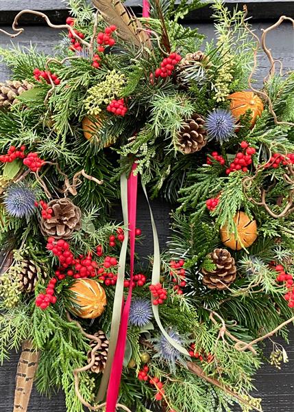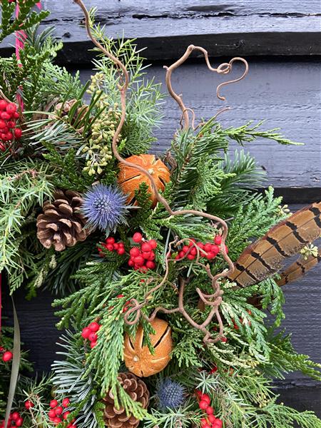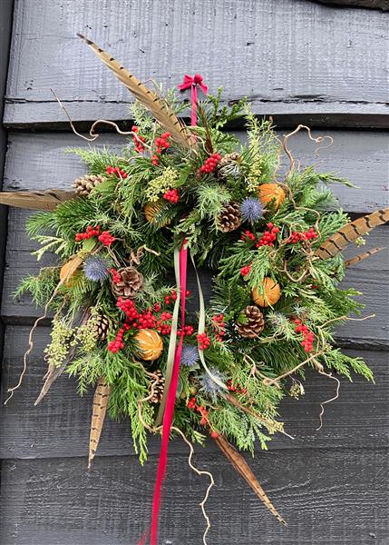 Please email after placing your order if you would prefer not to have pheasant feathers in your wreath, we can substitute these with extra of the other decorations.
