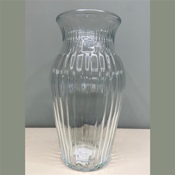 Make your bouquet extra special by adding a clear glass ribbed vase. Presented with a bow, allowing the recipient to enjoy their flowers fuss free.